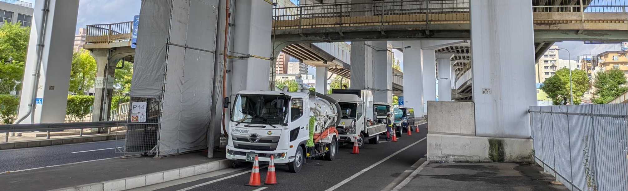 高圧ポンプで圧縮・噴射された超高圧水を利用し、構造物へのダメージや環境への負担を軽減できるのが特長です。